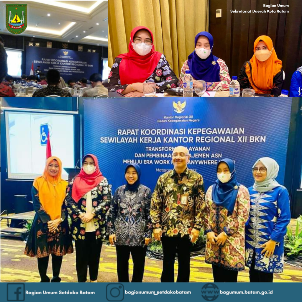 Bagian Umum Sekretariat Daerah Kota Batam menghadiri Rapat Koordinasi Kepegawaian oleh Badan Kepegawaian Negara di Mataram, Nusa Tenggara Barat pada Kamis, 16 Juni 2022 08.00 WIB hingga selesai. Acara ini bertema Transformasi Layanan Dan Pembinaan Manajemen ASN Menuju Work From Anywhere (WFA).