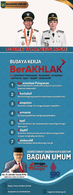 Bagian Umum menghadiri undangan Dinas Komunikasi dan Informatika Kota Batam untuk serah terima aplikasi eroom yang dikoordinasikan oleh Bagian Umum Sekretariat Derah Kota Batam. Acara ini berlangsung pada Senin, 30 Oktober 2023. Aplikasi Peminjaman Ruangan dapat membantu pegawai dalam melakukan kegiatan peminjaman ruangan dan mengetahui jadwal ruangan sehingga kegiatan peminjaman ruangan dan lapangan Engku Putri yang digunakan dalam aplikasi ini dapat berjalan dengan efektif dan efisien.